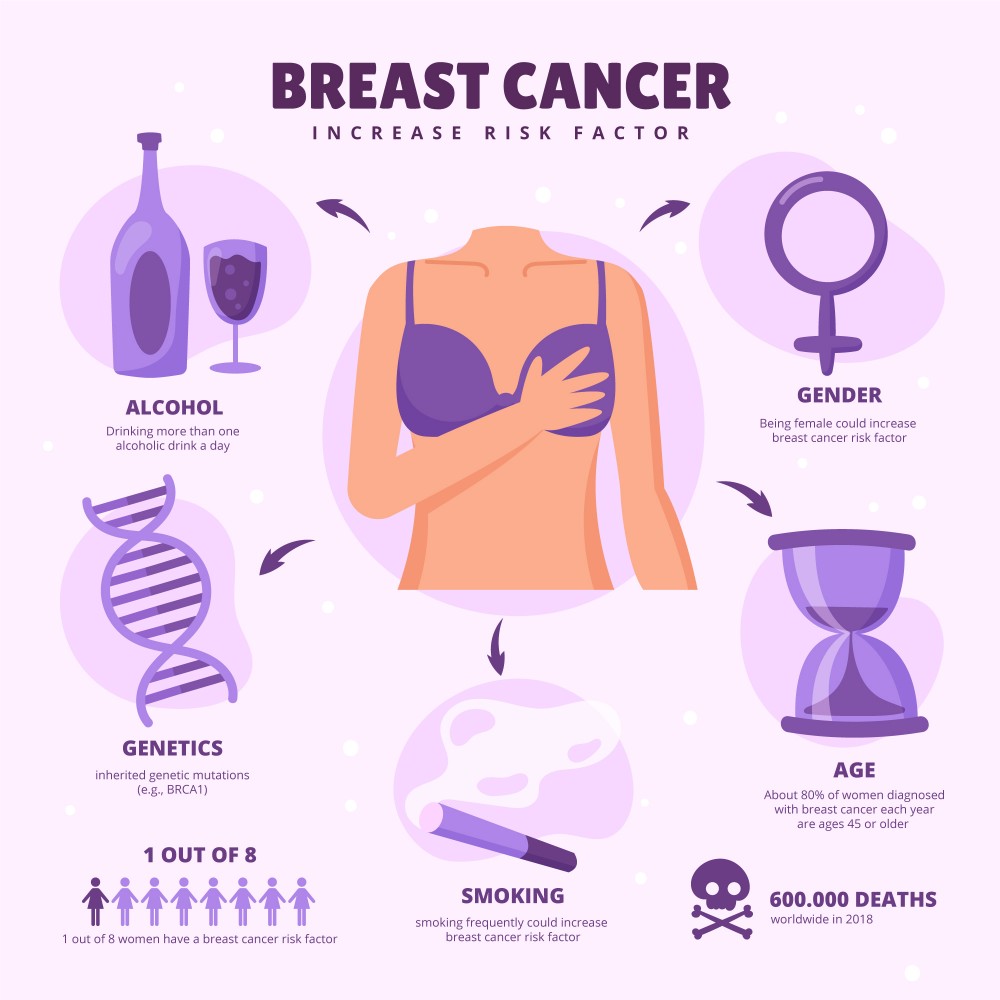 - 部分女性天生带有基因突变(BRCA1 和 BRCA2),增加了罹癌风险。