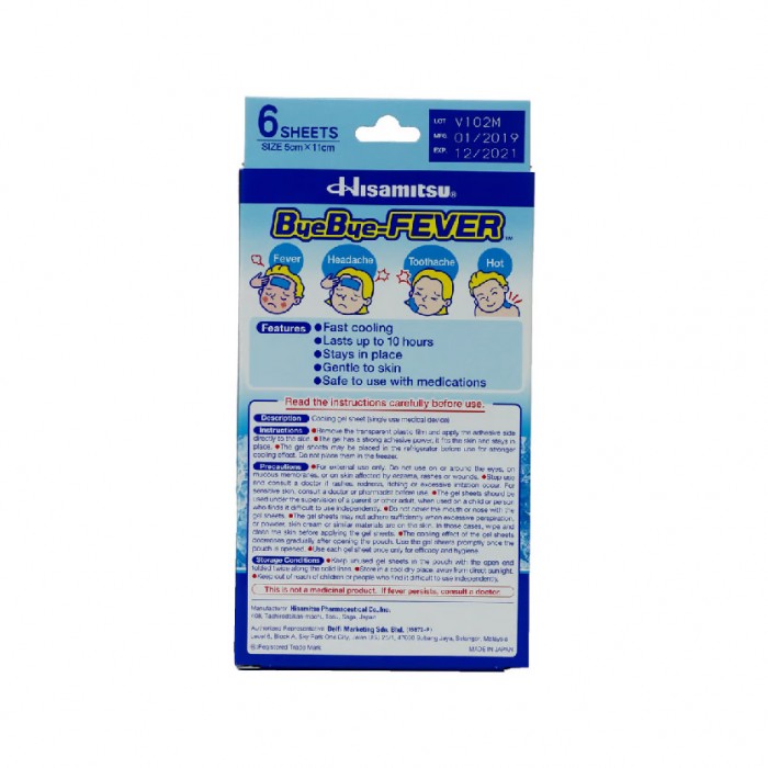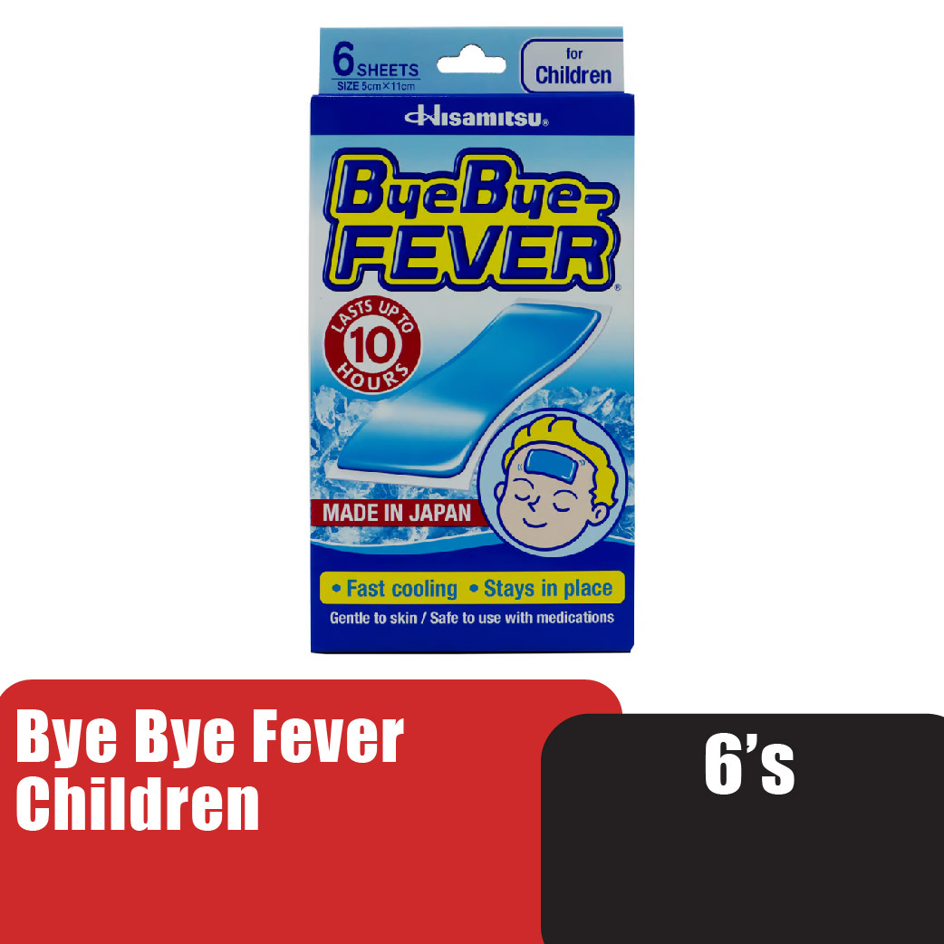 BYE BYE FEVER CHILDREN 6'S absorbs and disperses heat effectively and can be used when your baby becomes feverish. Perfectly sized, it attaches firmly to your baby forehead and will not displace at the slightest movement. The cooling gel in each sheet does not contain fragrance or colouring is gentle to baby skin. The crisp and cool effect will last for about 4 hours per sheet.