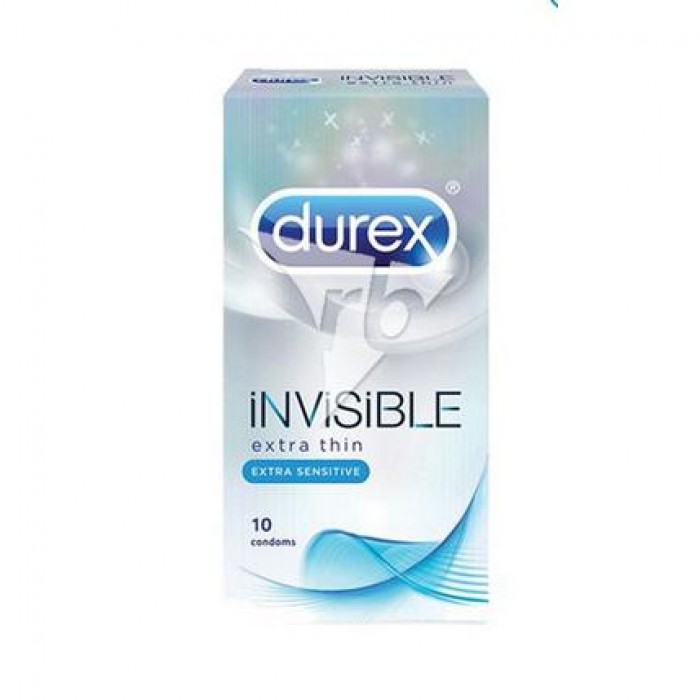 The thinnest condom ever developed by Durex â© PRODUCT DESCRIPTION Durex Invisible condoms are the thinnest ever developed by Durex, designed to maximize sensitivity, while still providing a high level of security and protection. â© Product Features â Extra Thin â Extra Sensitive â Straight Walled and Teat Ended â Transparent and Lubricated Natural Rubber Latex Condoms â Nominal Width: 52Mm â© STORAGE INSTRUCTIONS Store in a cool, dry place away from direct sunlight. â© USAGE INFORMATION • Use a new condom for each act of sex. • Tear open the package carefully. Do not use fingernails, teeth, or anything that can damage the condom. • Before any sexual contact, place the condom on the head of the erect penis with the rolled side out. • Unroll or pull the condom all the way to the base of the erect penis. If the condom doesn’t unroll easily, it may be on backwards, damaged, or too old. Throw it away and start over with a new condom. • Immediately after ejaculation, hold the rim of the condom in place and withdraw the penis while it is still erect. • Dispose of a used condom by wrapping it in tissue and throwing it into the trash. Wash your hands with soap and water.