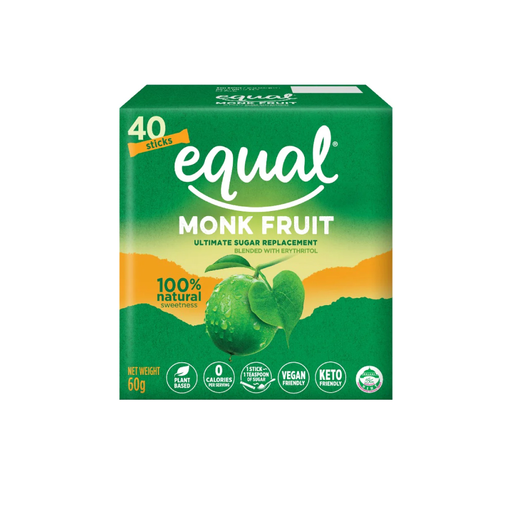 EQUAL Monk Fruit 60g X 40's for Sugar Replacement, Pemanis Natural, Organic Sweetener