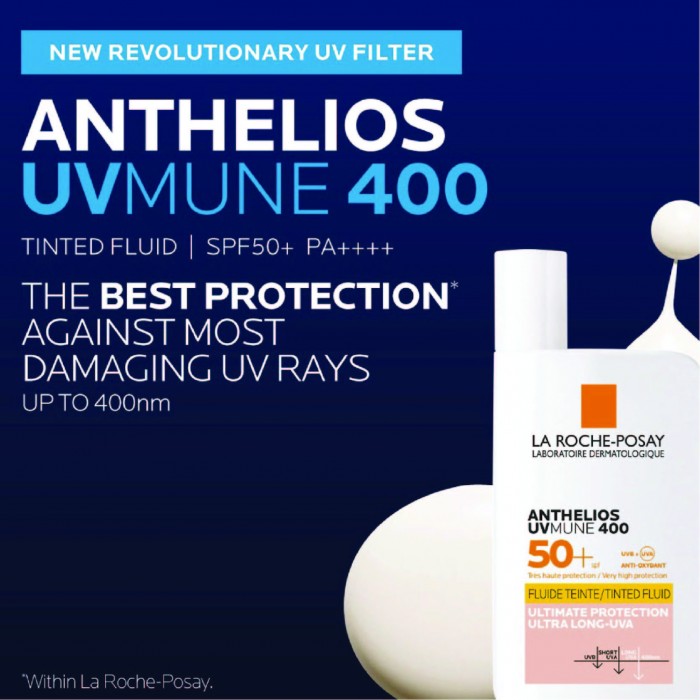 ANTHELIOS UVMUNE 400 INVISIBLE FLUID SPF50+ NON-PERFUMED : With MEXORYL400, the most efficient UV filter against the most insidious UV rays : ULTRA LONG UVA*. Ultimate sun protection (UVB + UVA + ULTRA LONG UVA) against deep cell damage.