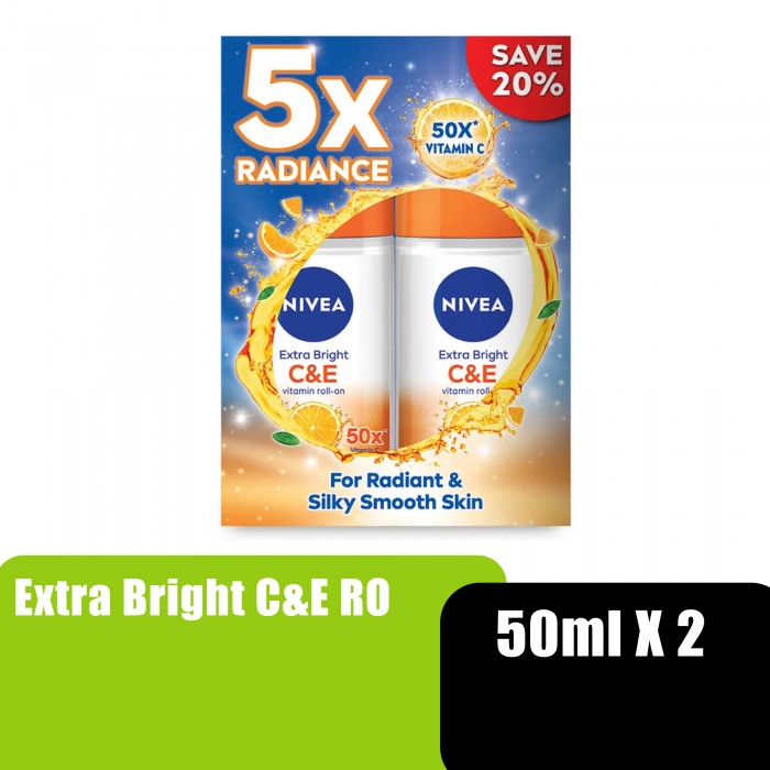 What's in the box: 1x NIVEA FEMALE EXTRA BRIGHT C&E ROLL 50ML X2