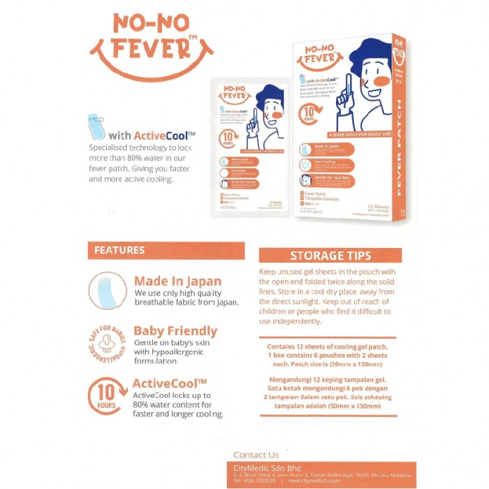 What's in the box: 1 x Nono Fever Patch - Adult 2's X 6
