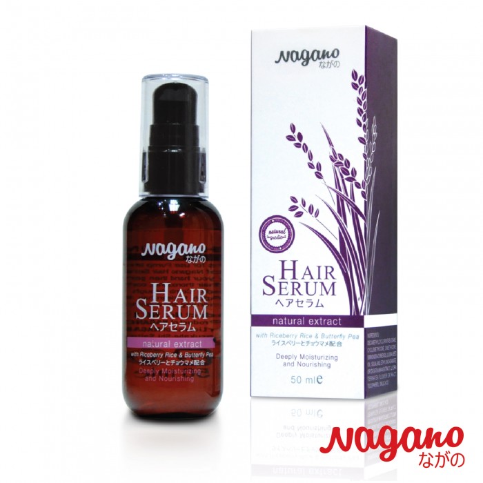 Nagano Hair Serum with antioxidant rich Riceberry Rice and Butterfly Pea helps to deeply moisturize dry and damaged hair, recover damaged split-end hair and protect it from sunlight and pollution. It will leave your hair silky, shiny and healthy all day without becoming sticky and oily.