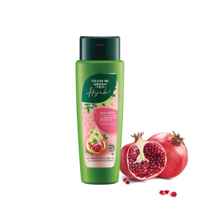 Sensitive or itchy scalp will find relief in FOLLOW ME Green Tea Hijab Anti-Itch pH-Balanced Shampoo. Inspired by Japanese technology and infused with natural green tea antioxidants and natural extracts, it stops excessive oil production, leaving scalp clean, and hair bouncy, shiny and smooth with a fresh 48-hour scent.