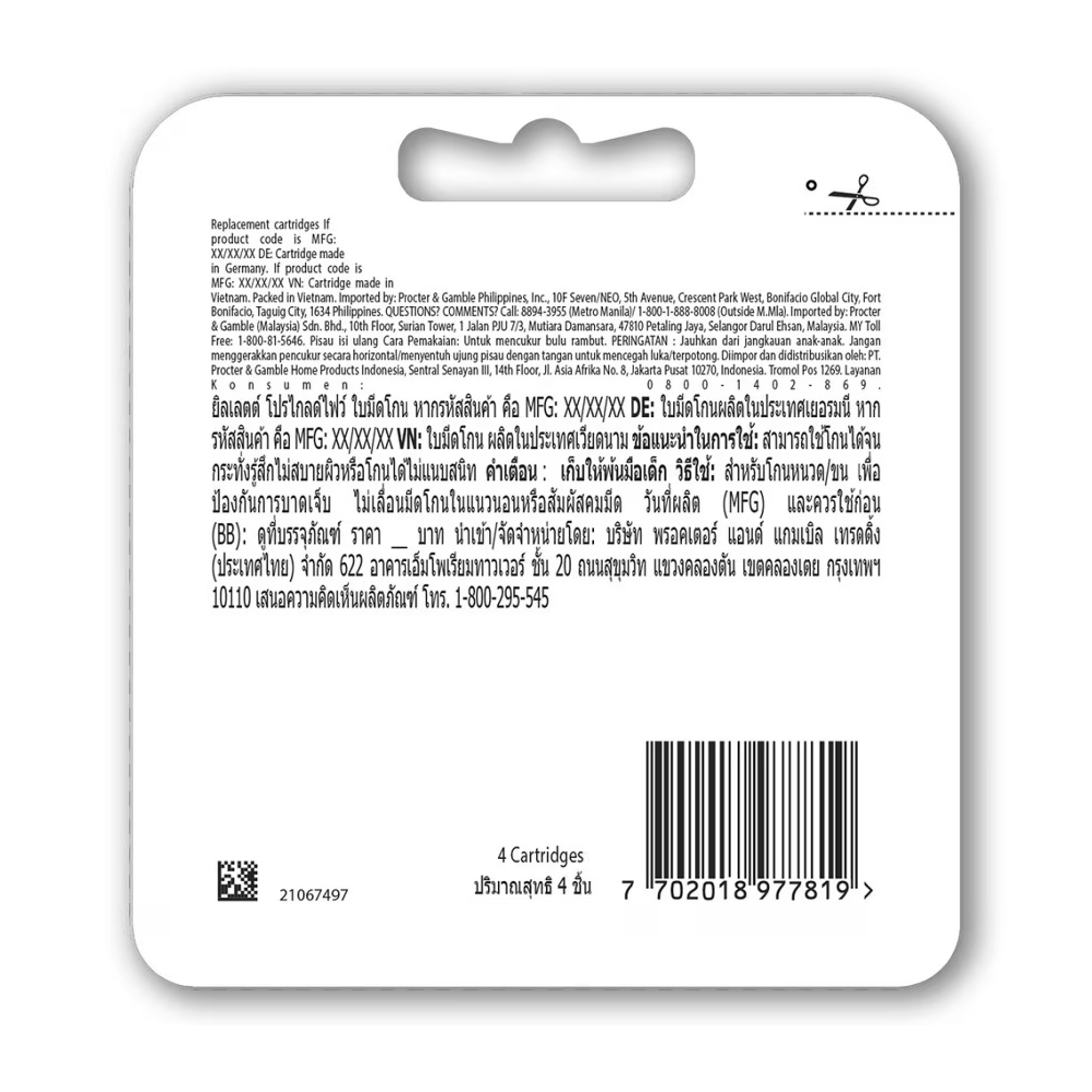 Gillette Fusion ProGlide Razor Blades: Gillette's razor blade on sensitive skin (in manual & power) with thinner, finer blades (first 4 blades) for less tug and pull (vs. Fusion) Gillette Fusion ProGlide Razor Blades: Precision Trimmer on the back for accurate edging Gillette Fusion ProGlide Razor Blades: Enhanced Lubrastrip® (vs. MACH3) for smooth glide 1 Razor Blade Refill = up to 1 month of shaves* / *Based on 3-4 shaves per week Gillette Fusion ProGlide Razor Blades: Gillette's most advanced razor blade coating