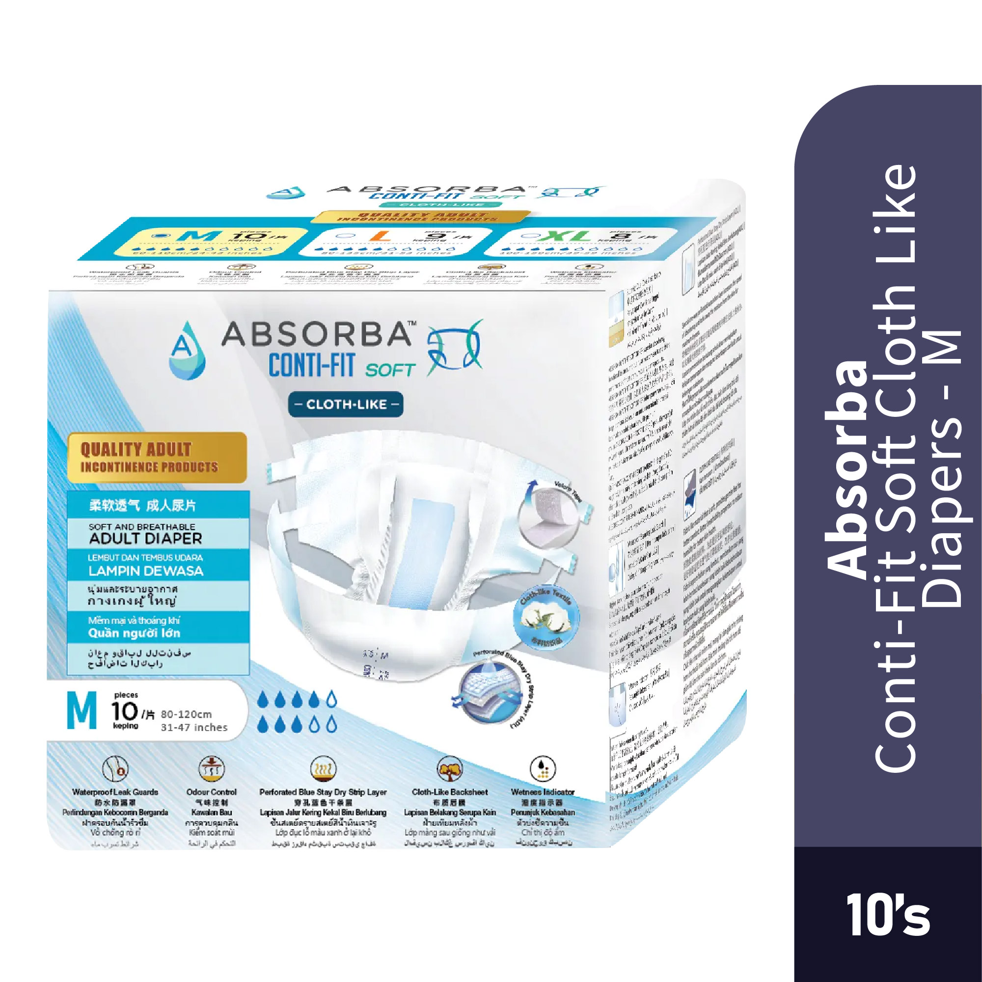 ABSORBA Conti-Fit Soft Clothlike Diapers 10's - M size