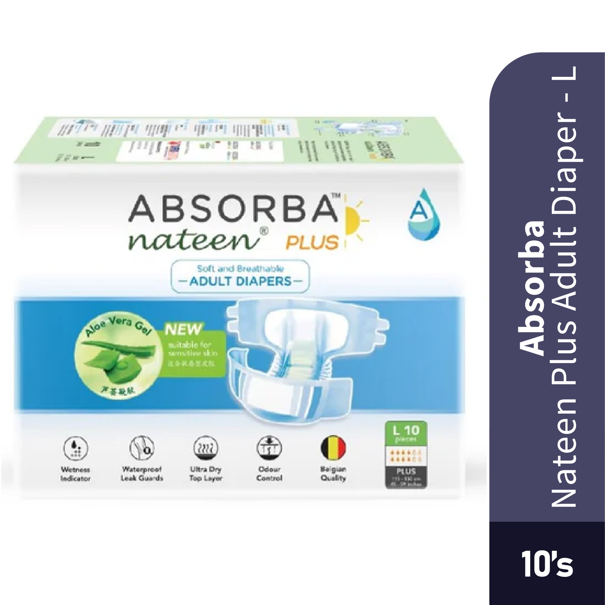 ABSORBA NATEEN PLUS Adult Diapers are designed to provide reliable protection, comfort, and confidence for adults experiencing moderate incontinence. Made with a soft, breathable surface and an absorbent core, these diapers help keep skin dry while reducing leakage and odour. Suitable for both men and women, they are ideal for daily use and extended wear.