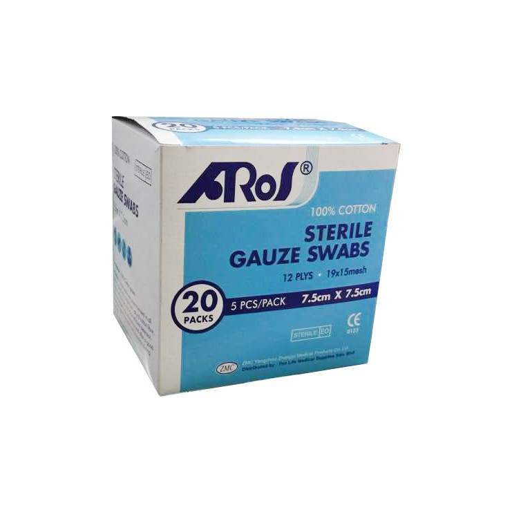 AROS STERILE GAUZE SWAB 7.5CM x 7.5CM 5'S X 20