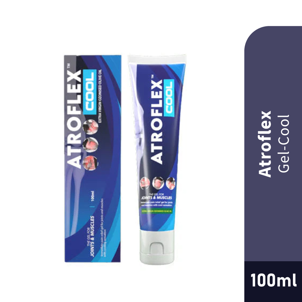 ATROFLEX Gel Cool 100ml – A cooling topical gel specially formulated to help relieve joint and muscle pain. The cool sensation provides soothing relief for muscle soreness, sprains, minor strains, and joint discomfort while delivering a refreshing cooling effect on the affected area.