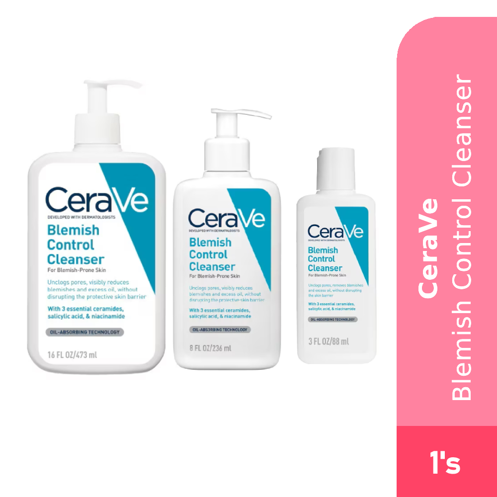 CERAVE Acne Blemish Control Cleanser (473ml | 236ml | 88ml) for Acne Cleanser, Blackhead Remover, Pencuci Muka Jerawat