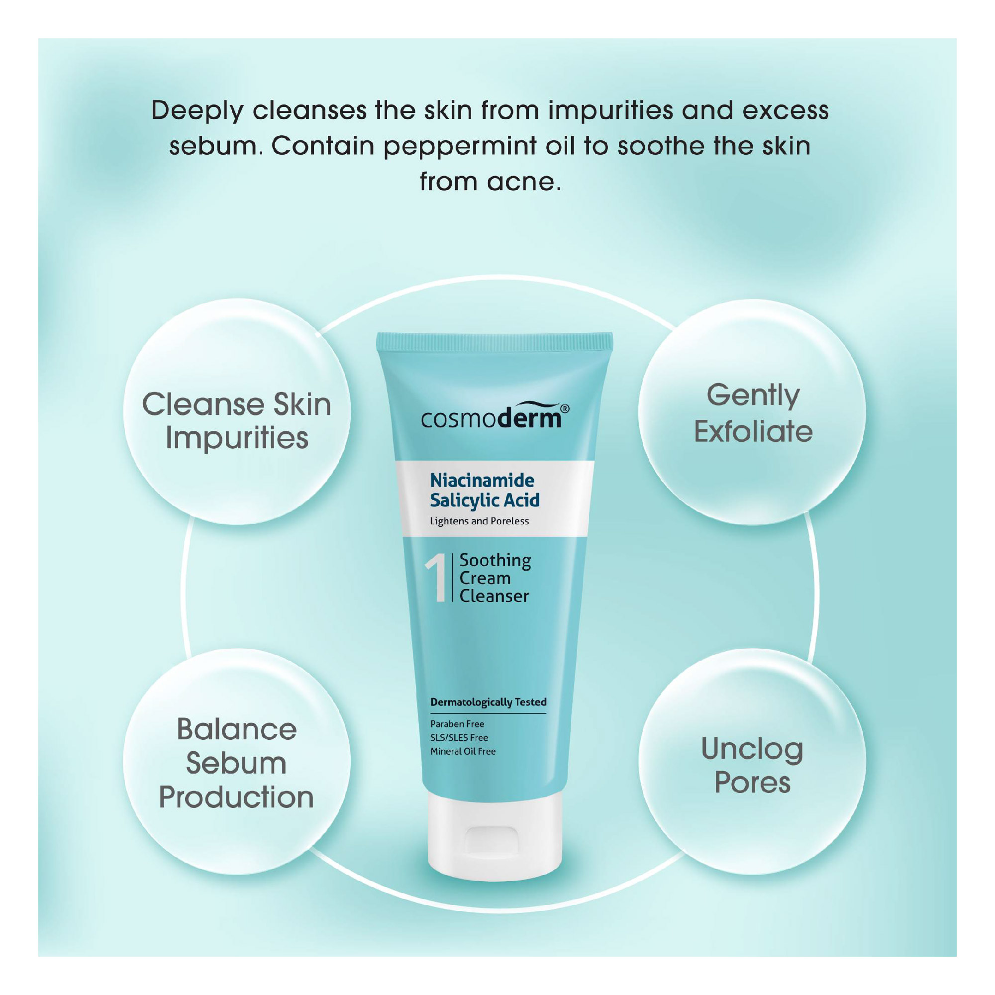 Benefits of Cosmoderm Niacinamide Salicylic Acid Soothing Cream Cleanser 125ml (Face Wash):
