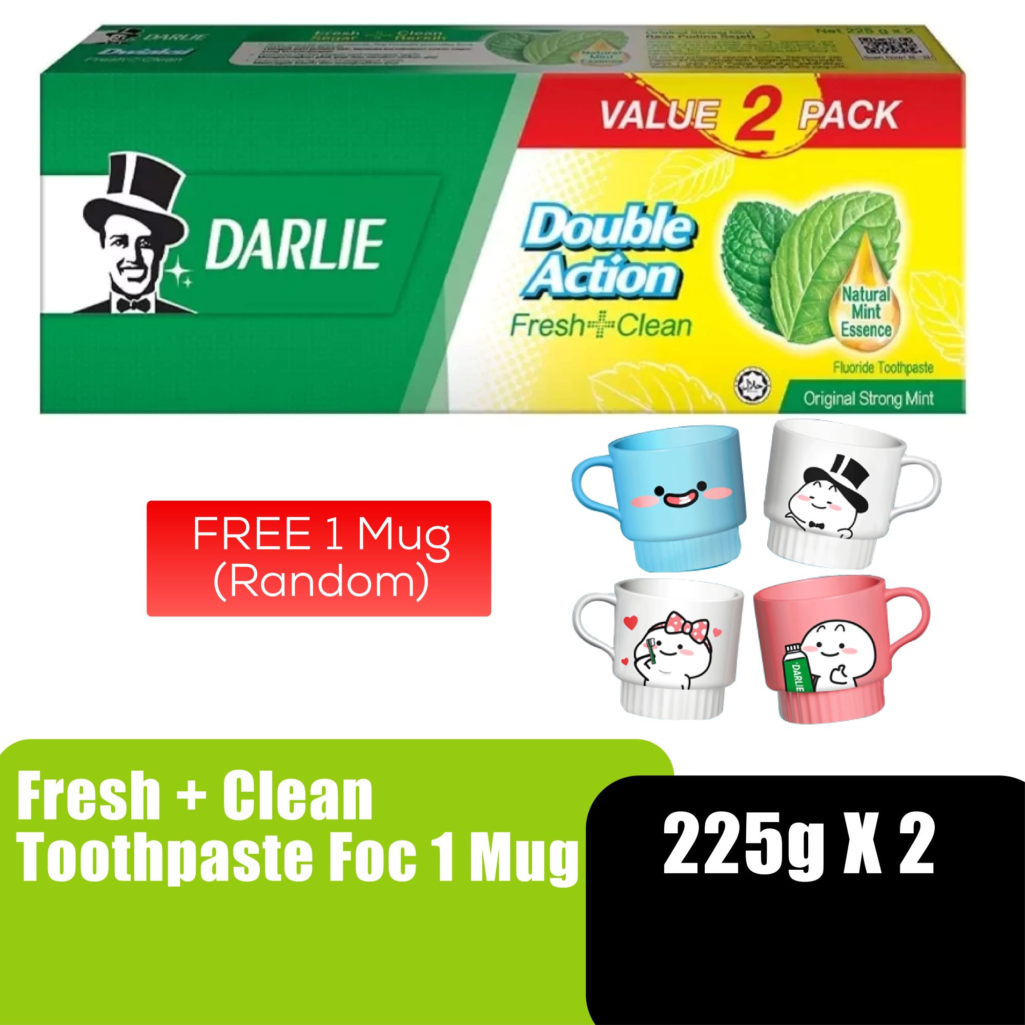 DARLIE DOUBLE ACTION FRESH + CLEAN TOOTHPASTE 225G x 2 WITH FOC MUG
