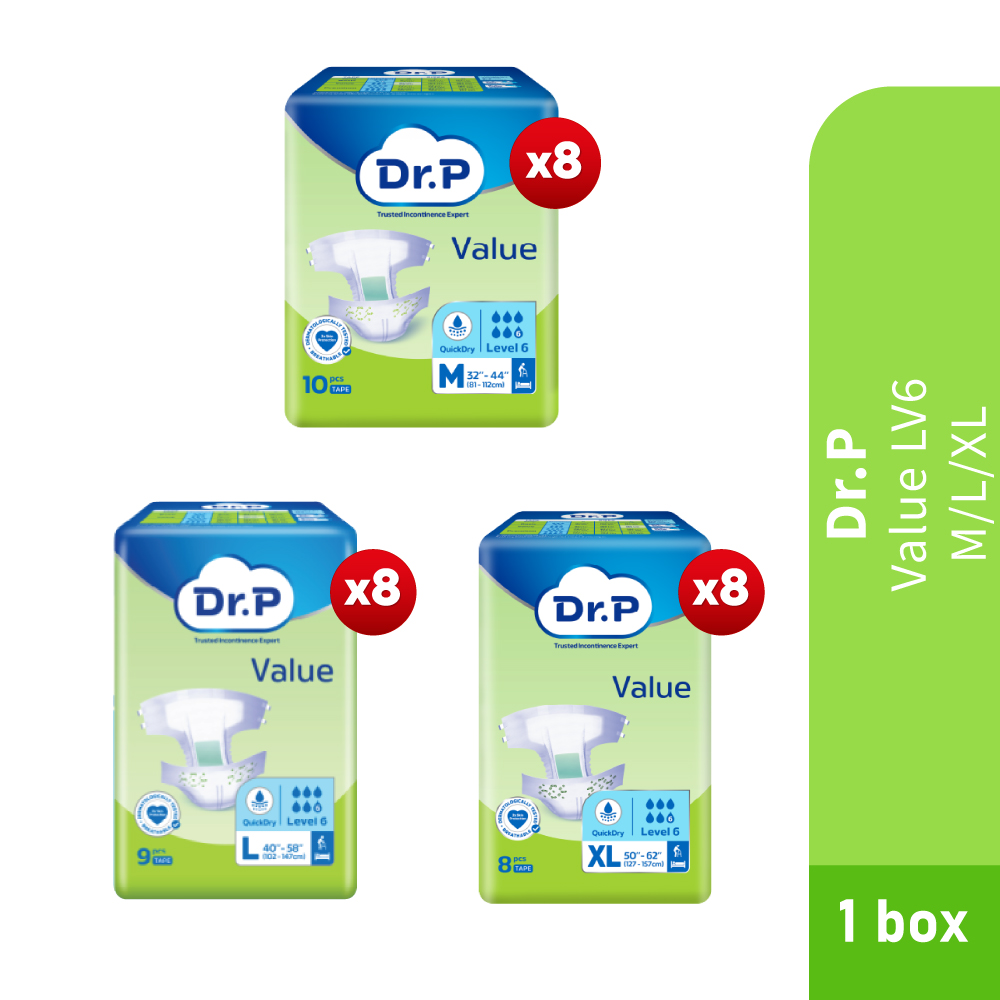 DR.P Value Level 6 Tape M / L / XL (1 Carton) Adult Diapers Tape Murah, Lampin Dewasa