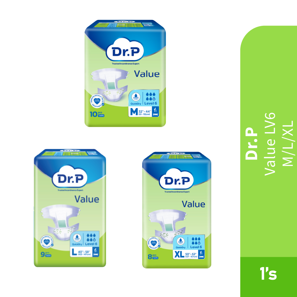 DR.P Value Level 6 Tape M/L/XL (1 Pack) Adult Diapers Pants Murah, Lampin Dewasa
