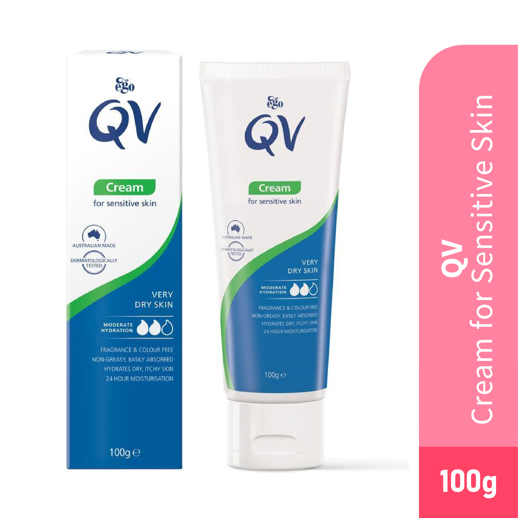 Highly concentrated moisturising cream for dry skin. This rich, protective cream replenishes the skin and helps repair dry areas. It contains squalene, a natural component found in the skin’s oil. Areas prone to dryness like the elbows, knees and hands will just love what QV Cream can do to help. Benefits • Recommended for moisturising dry skin. • Helps to seal in natural moisture by acting as a protective barrier. • Helps protect against dryness. • pH 6, low-irritant formulation, free from fragrance, colour, lanolin and propylene glycol. • Suitable for sensitive skin and flaking or itchiness due to dry skin conditions. • Suitable for infants and the elderly.