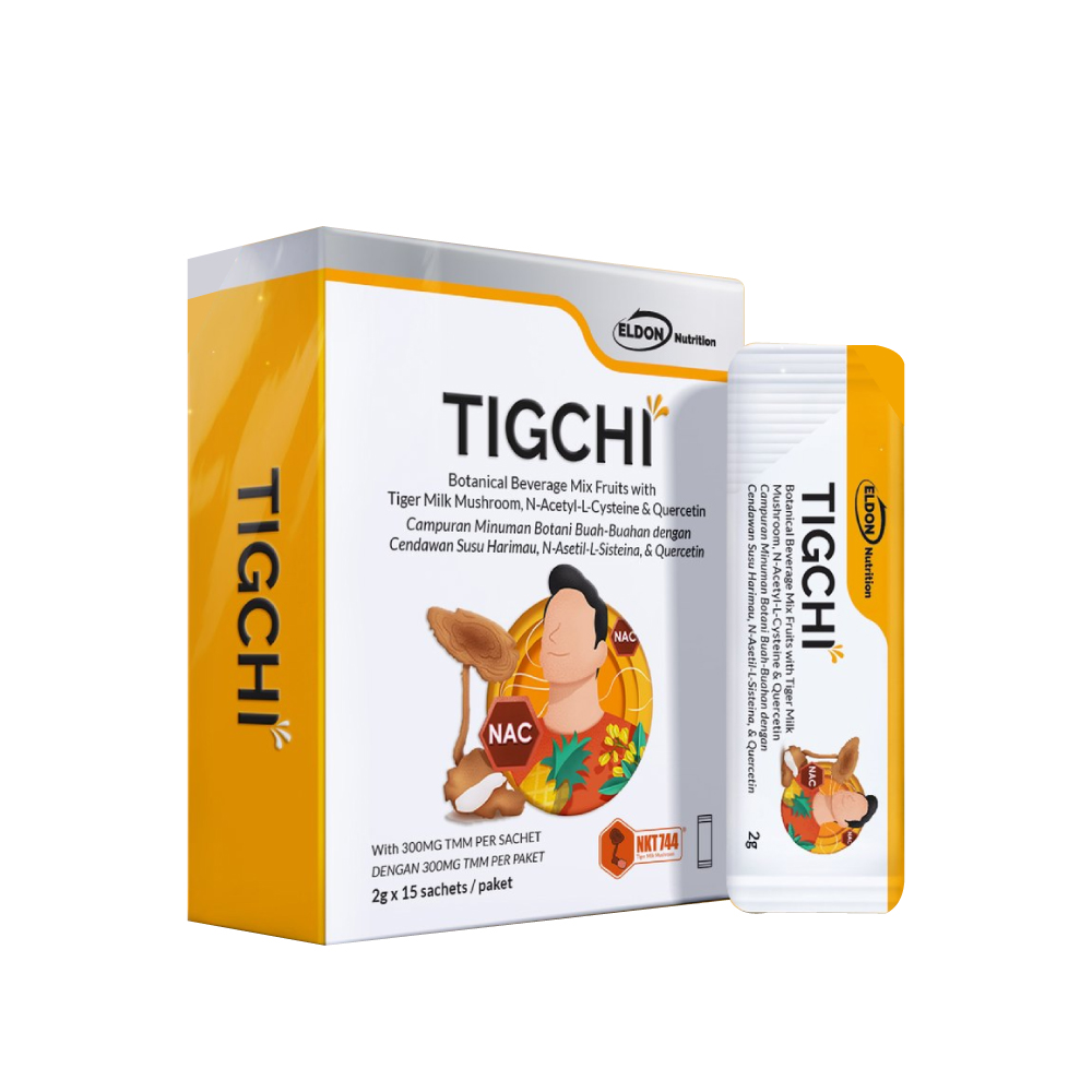 Breathing freely shouldn’t be a struggle. Yet today, allergies, sinus congestion, and environmental irritants can make every breath feel heavier. Eldon Nutrition TigChi Powder helps you regain that ease, offering fast symptoms relief and long-term respiratory defense in one convenient mixed fruit–flavoured sachet. Powered by the synergy of four ingredients — NKT744® Tiger Milk Mushroom, Quercetin, Bromelain, and N-Acetyl-L-Cysteine (NAC). TigChi Powder works to soothe allergic reactions, and strengthen your respiratory defense from within.