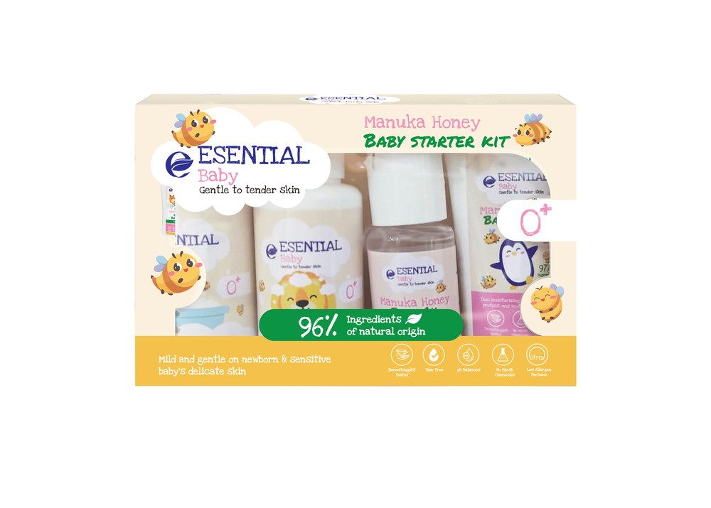 ESENTIAL BABY 4 in 1 Starter Kit Set is a gentle and convenient mini-size bundle designed for newborns and toddlers. Perfect for travel, gifting, hospital bags, or first-time parents. Each item is formulated to be mild, safe, and suitable for daily baby care.
