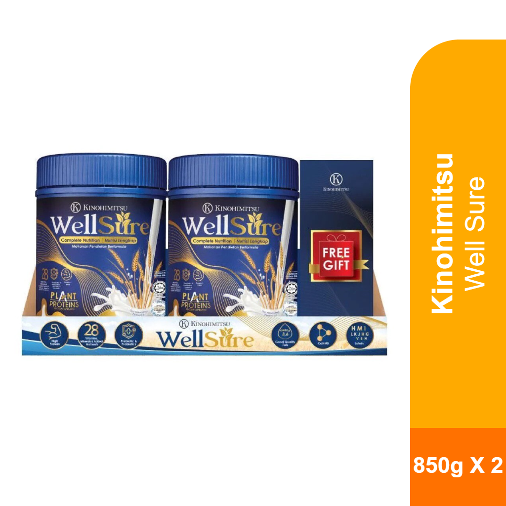 KINOHIMITSU WELLSURE 850G is a premium nutritional drink formulated to support overall wellness, strength, and vitality. Enriched with essential nutrients, it is suitable for adults and seniors who want to maintain energy levels, immunity, and daily nutritional balance.