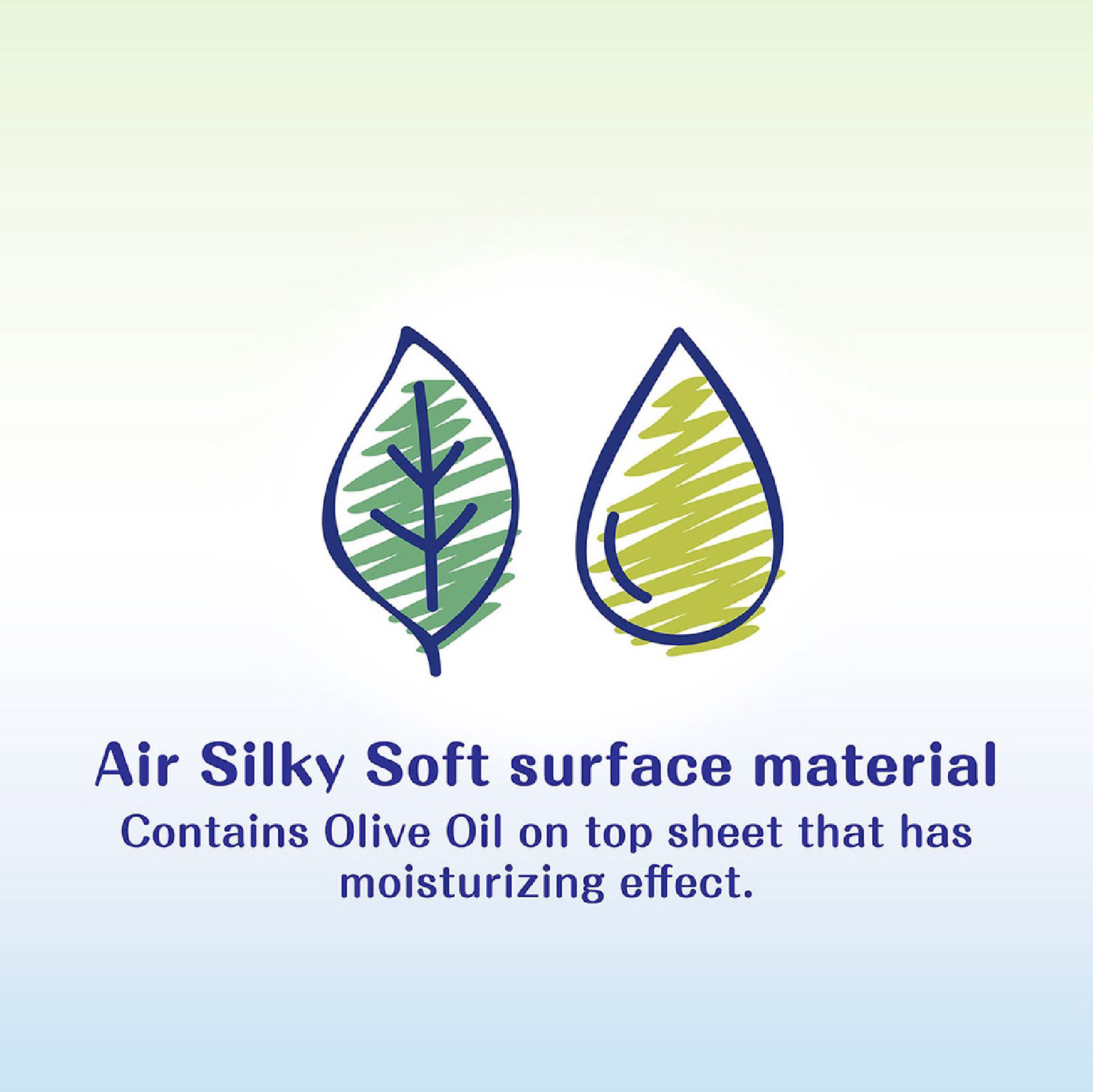 MamyPoko Pants Air Fit with its Air Fit Gathers around the thighs fit closely around the leg cuffs leaving no gap for leakages. The cloth like Soft Stretchy material fits gently around the waist to prevent leakages even when baby moves.