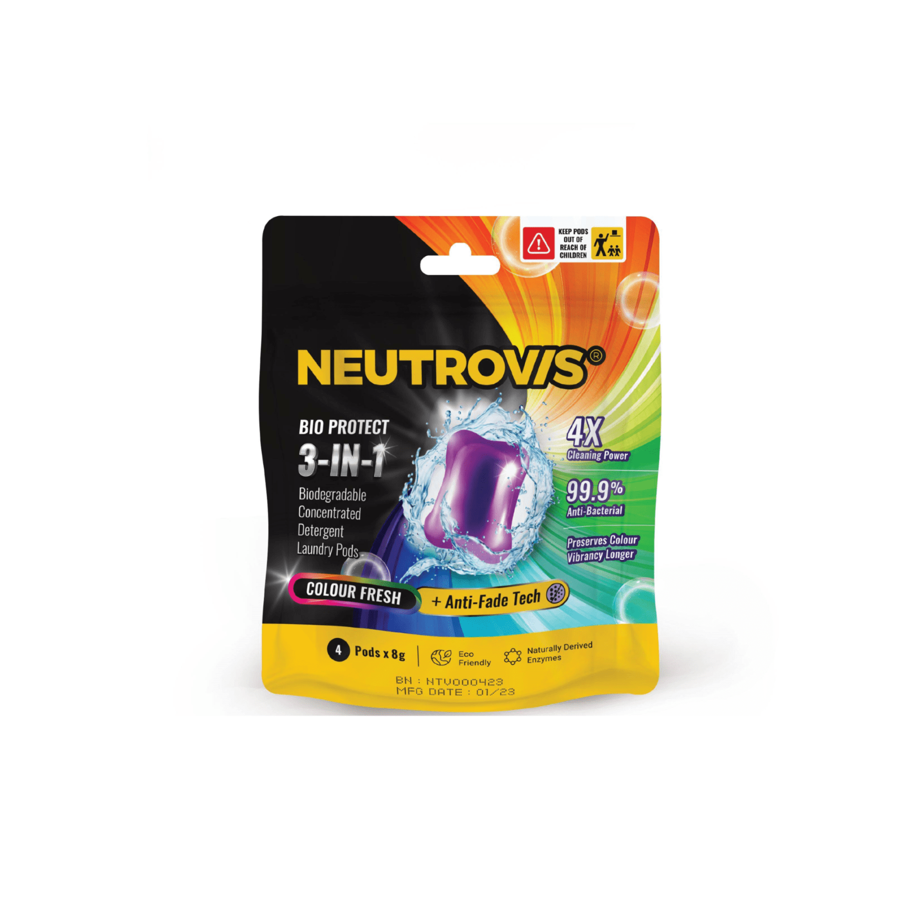 NEUTROVIS 3 IN 1 DETERGENT LAUNDRY PODS 8G X 25'S - COLOUR FRESH