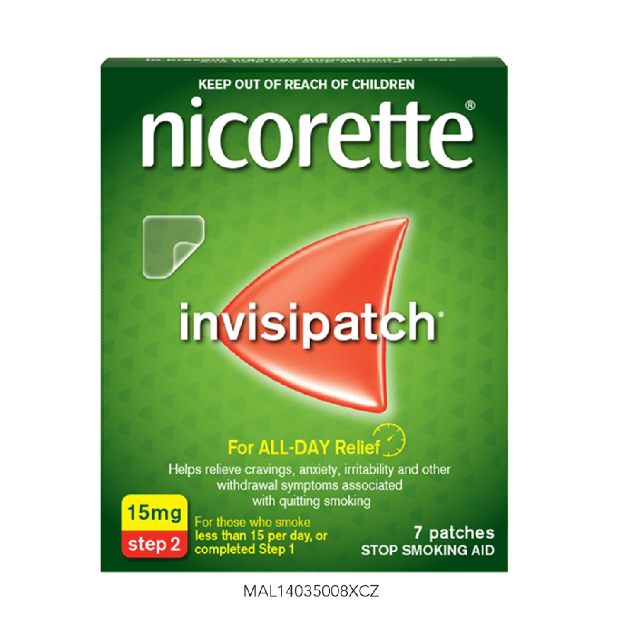 What's in the box: 1 x NICORETTE Invisipatch 15mg/16hr 7's