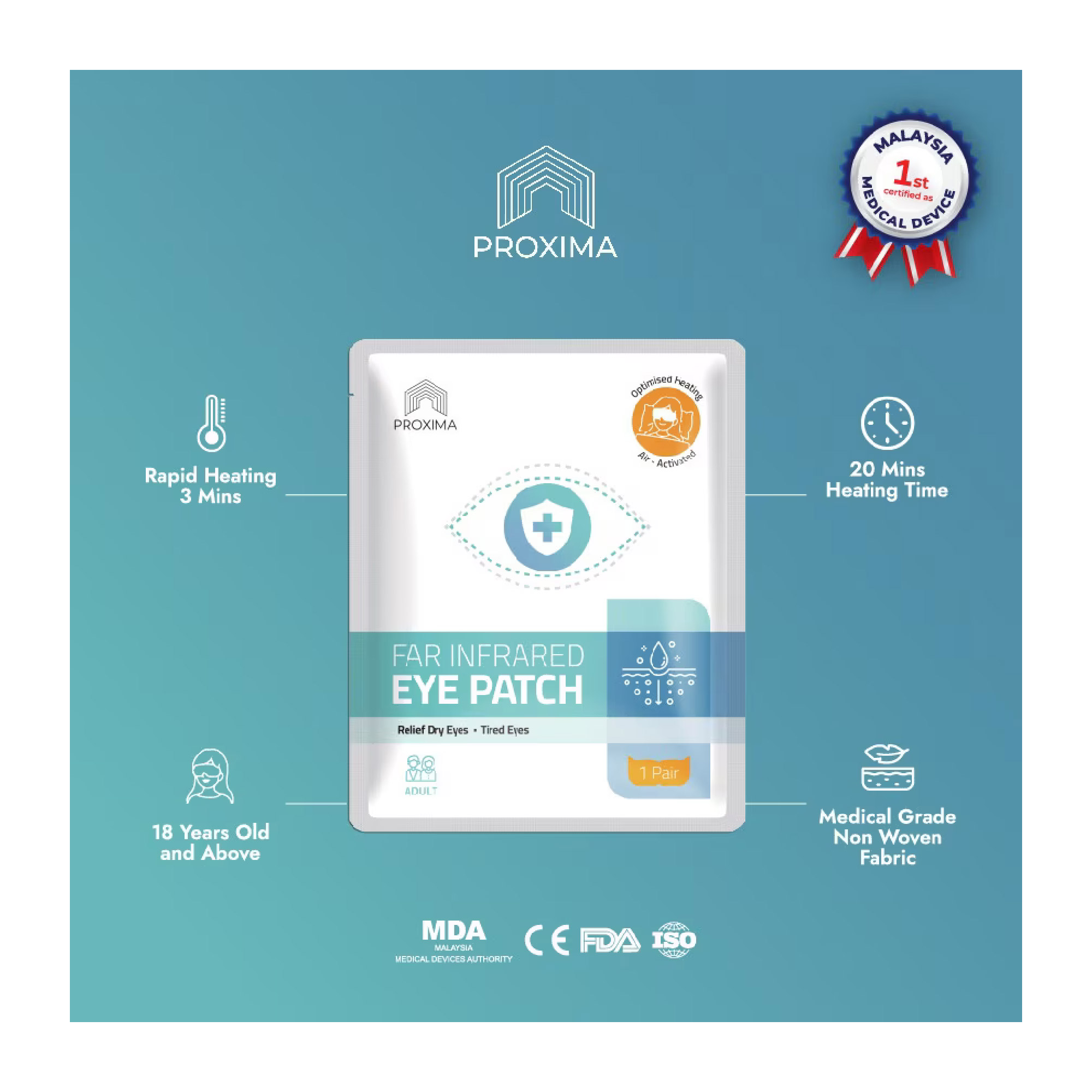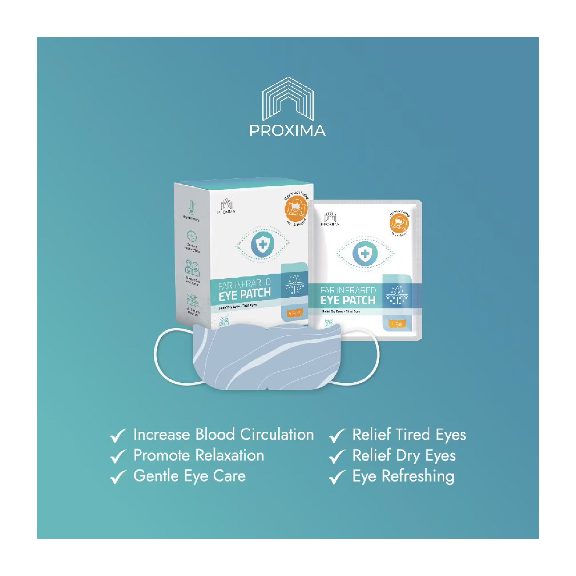 PROXIMA Far Infrared Eye Patch is designed to provide soothing relief around the eye area using far-infrared heat technology. It helps relax tired eyes, reduce puffiness, and relieve discomfort caused by stress, screen time, or fatigue.