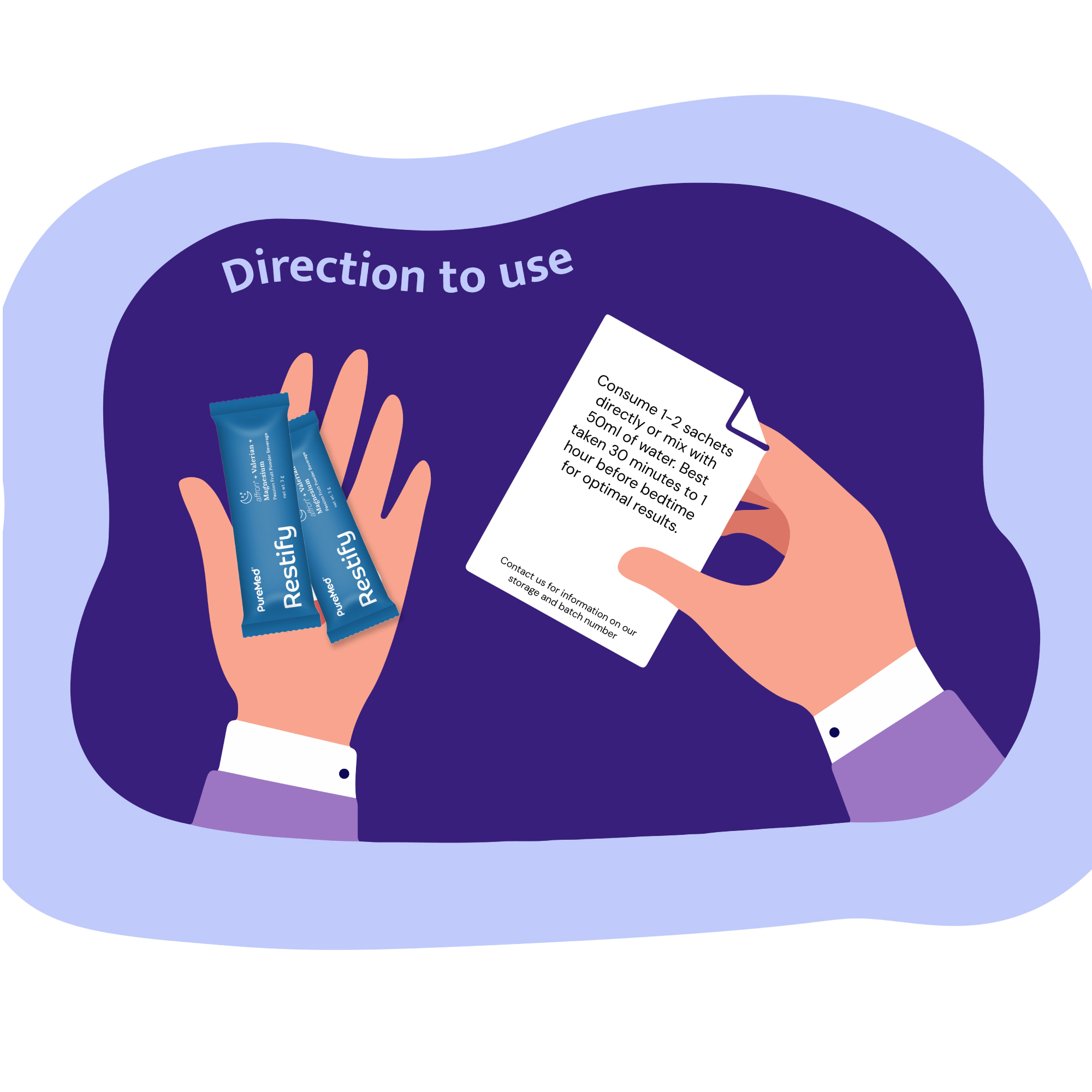 Use of the Product: Take one capsule before bedtime to help induce sleep. PureMed Restify Capsule is intended for adults who have difficulty falling asleep or staying asleep.