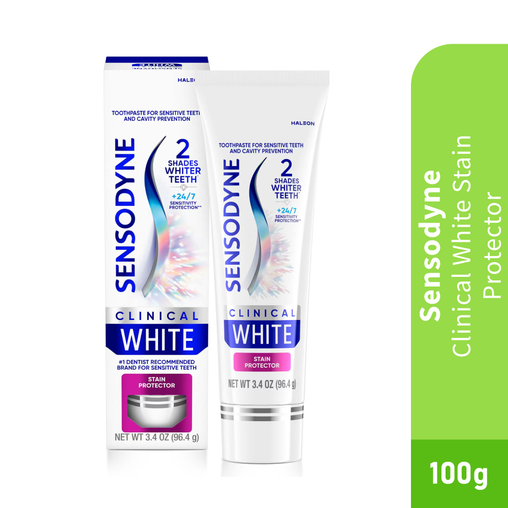 SENSODYNE Clinical White Stain Protector Toothpaste is formulated for people with sensitive teeth who want to maintain a clean and brighter-looking smile. It helps remove surface stains caused by everyday food and drinks while being gentle on sensitive teeth. Suitable for daily use as part of a regular oral care routine.