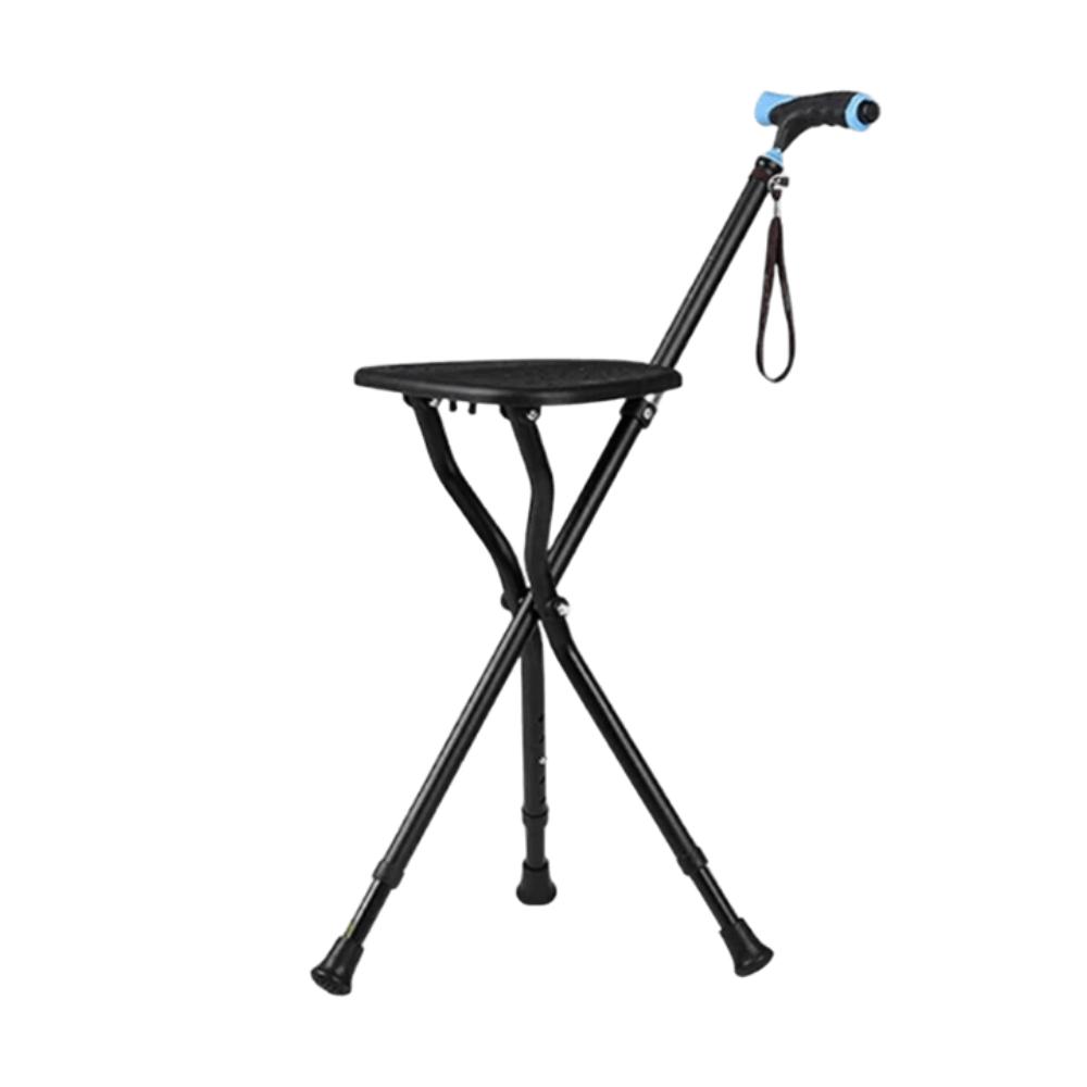 Use as a walking cane for daily mobility support. When resting is needed, unfold the tripod legs fully and ensure it is placed on a flat, stable surface before sitting.