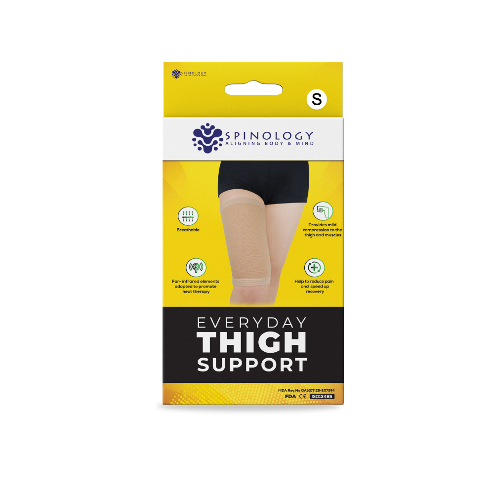 SPINOLOGY Everyday Thigh Support is designed to provide gentle compression and support to the thigh area, helping improve comfort during daily activities, sports, or recovery. Made with breathable and flexible material, it offers a snug fit without restricting movement, suitable for everyday wear.