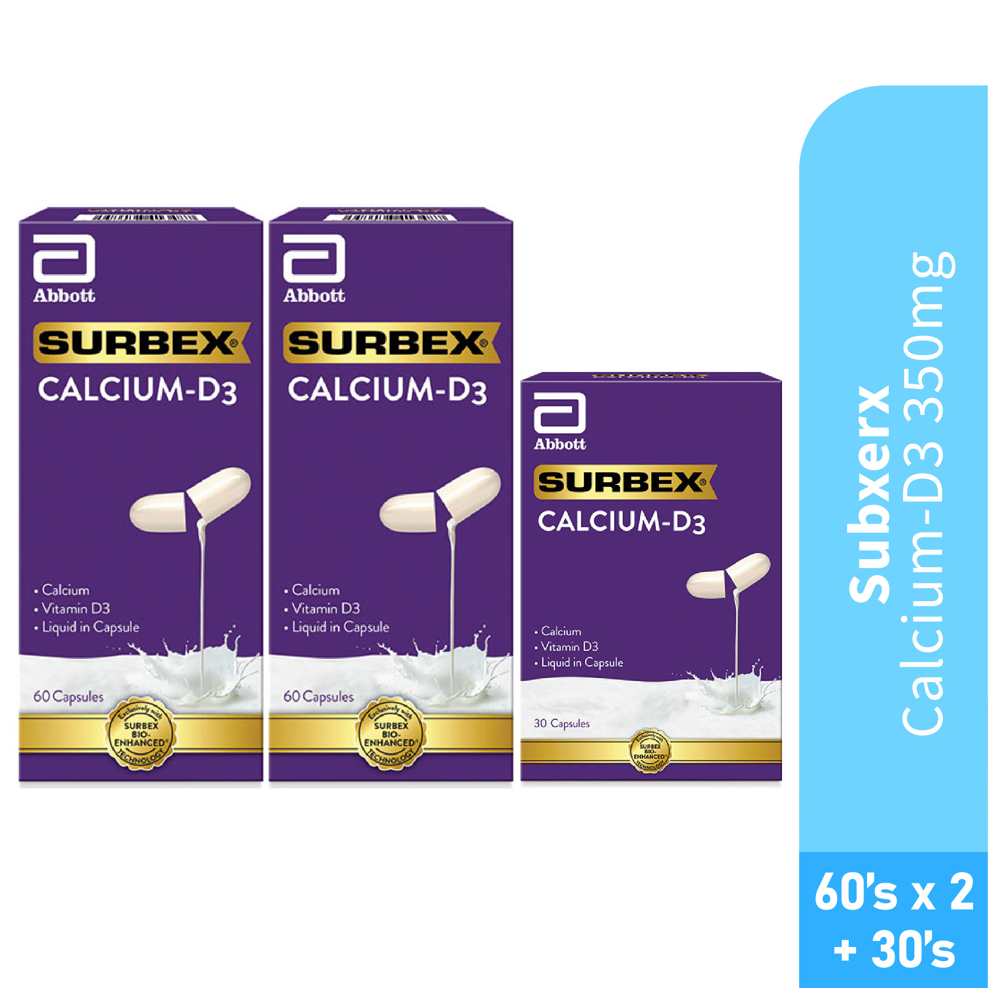 SURBEX Calcium-D3 350mg 60's x 2 + 30's (Seasonal Packing) for Calcium, Vitamin D3