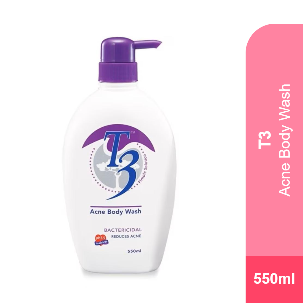 T3 Acne Body Wash 550ml for Sabun Mandi, Sabun Jerawat Badan, Sabun Badan