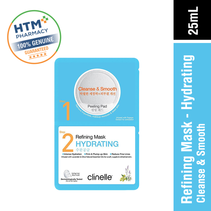 Clinelle Peeling Pad & Refining Mask - Hydrating is for intense hydration. Enriched with Hyaluronic acid and Trehalose that provide deep hydrating and moisturizing benefits. It helps to firm and plump-up skin while reducing fine lines. It is also infused with lavender and olive natural essential oils for a soft, supple and refreshed skin.
