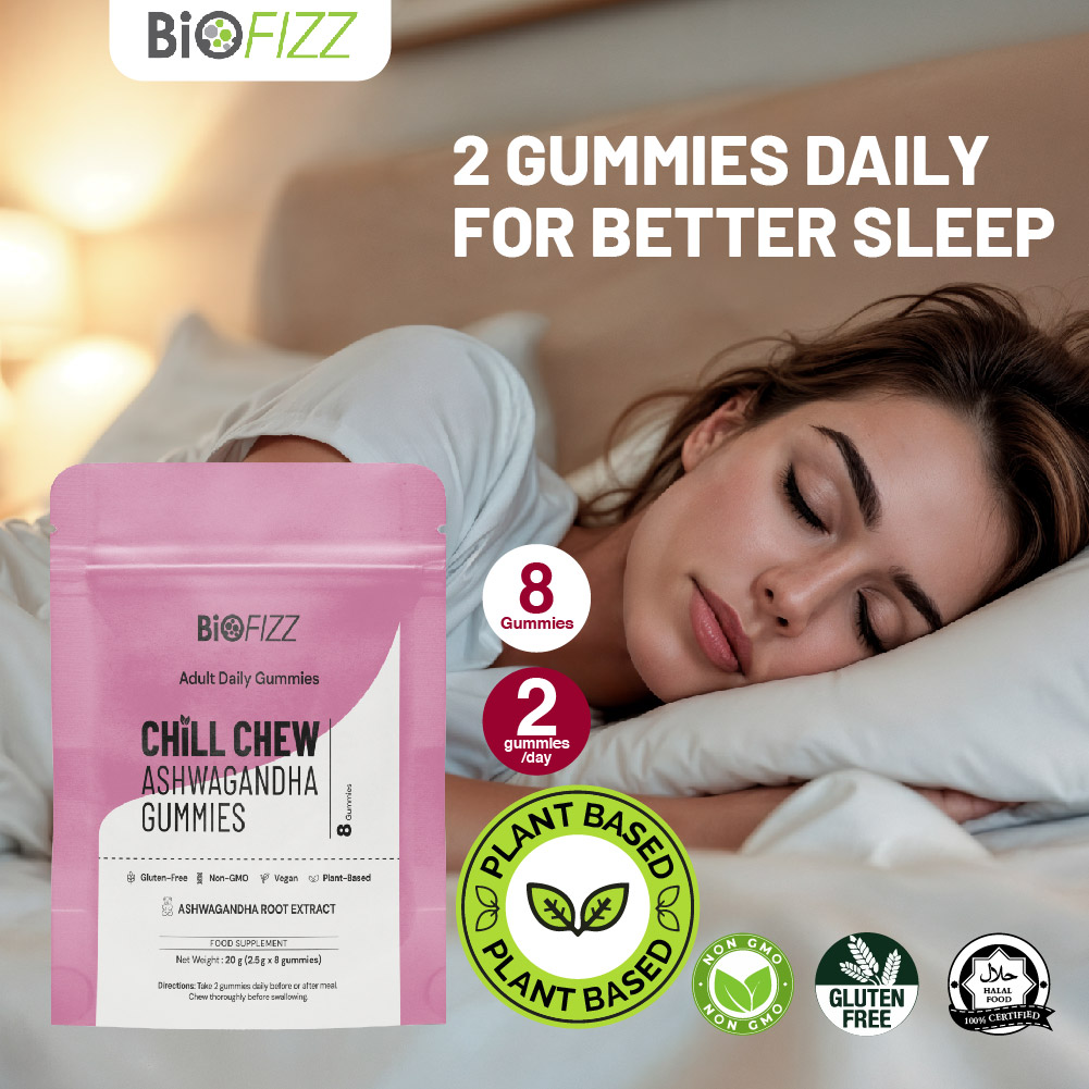 BIOFIZZ Chill Chew Ashwagandha Gummies 2.5g X 8's for Relax, Sleep, Stress, Gummy, Gummy Halal, 软糖 Earn 12.9 points with purchase