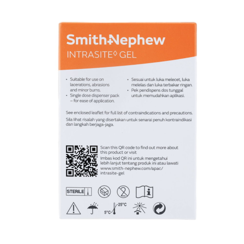 SMITH & NEPHEW Intrasite Gel is a sterile hydrogel dressing that helps keep wounds moist, softens dead tissue, and supports faster, natural healing. Suitable for dry, sloughy, or necrotic wounds.