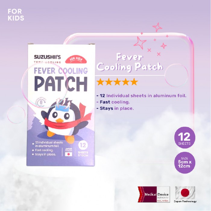 What's in the box: 1 x Suzushii's Temp Cooling Fever Cooling Patch For Kids 12's